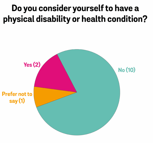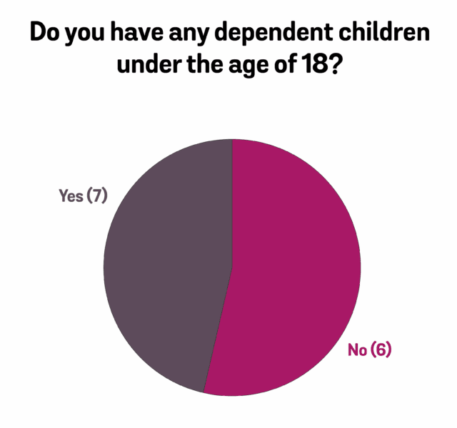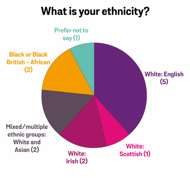 At present, Buttle UK has a team of 13 trustees. The following data reflects the diversity on the board as a whole.